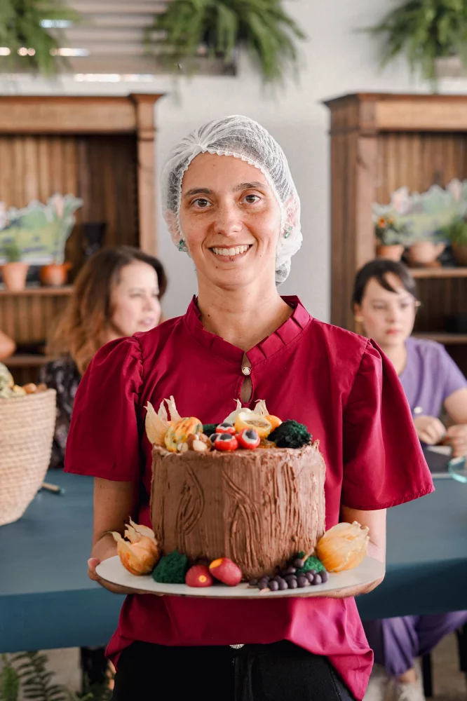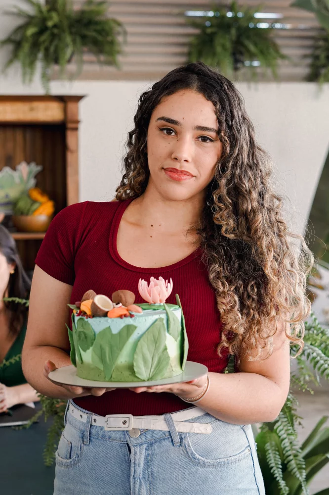 Já na categoria Amador, quem conquistou o primeiro lugar foi Quézia Fernandes (@queziafee), maquiadora que tem a confeitaria como hobby. Seu bolo de cupuaçu foi decorado com doces em formato de elementos naturais, como banana, flores, folhas e coco, compondo uma homenagem visual aos sabores regionais.