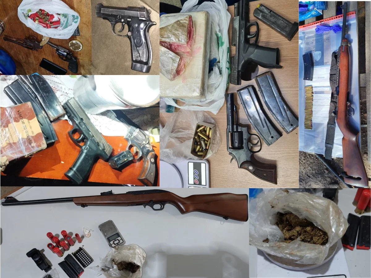 Ao todo, foram apreendidas nove armas de fogo, sendo: 01 fuzil calibre .30; 01 pistola calibre 9mm; 02 pistolas calibre .380; 02 revólveres calibre .38; 01 revólver calibre .22; 01 espingarda calibre .36; 01 espingarda calibre .22, totalizando 09 (nove) armas de fogo.