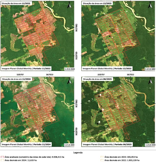 Segundo o MPRO, o grupo fraudava contratos de compra e venda de áreas, omitindo os verdadeiros compradores e utilizando “laranjas” para evitar responsabilidades civis, criminais e administrativas. O esquema resultou no desmatamento de 8.023,455 hectares de mata nativa — área equivalente a mais de 11 mil campos de futebol — com prejuízo ambiental estimado em R$ 605.111.082,57.
