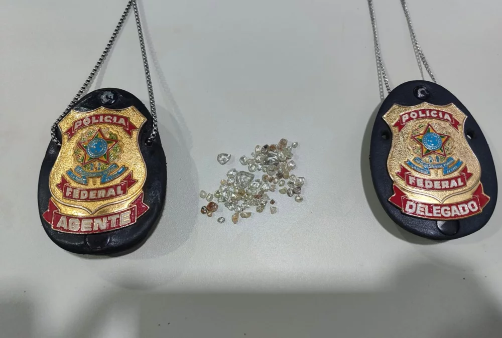 Durante a abordagem, os policiais apreenderam diamantes brutos, aparelhos celulares e outros materiais que devem auxiliar no avanço das investigações.